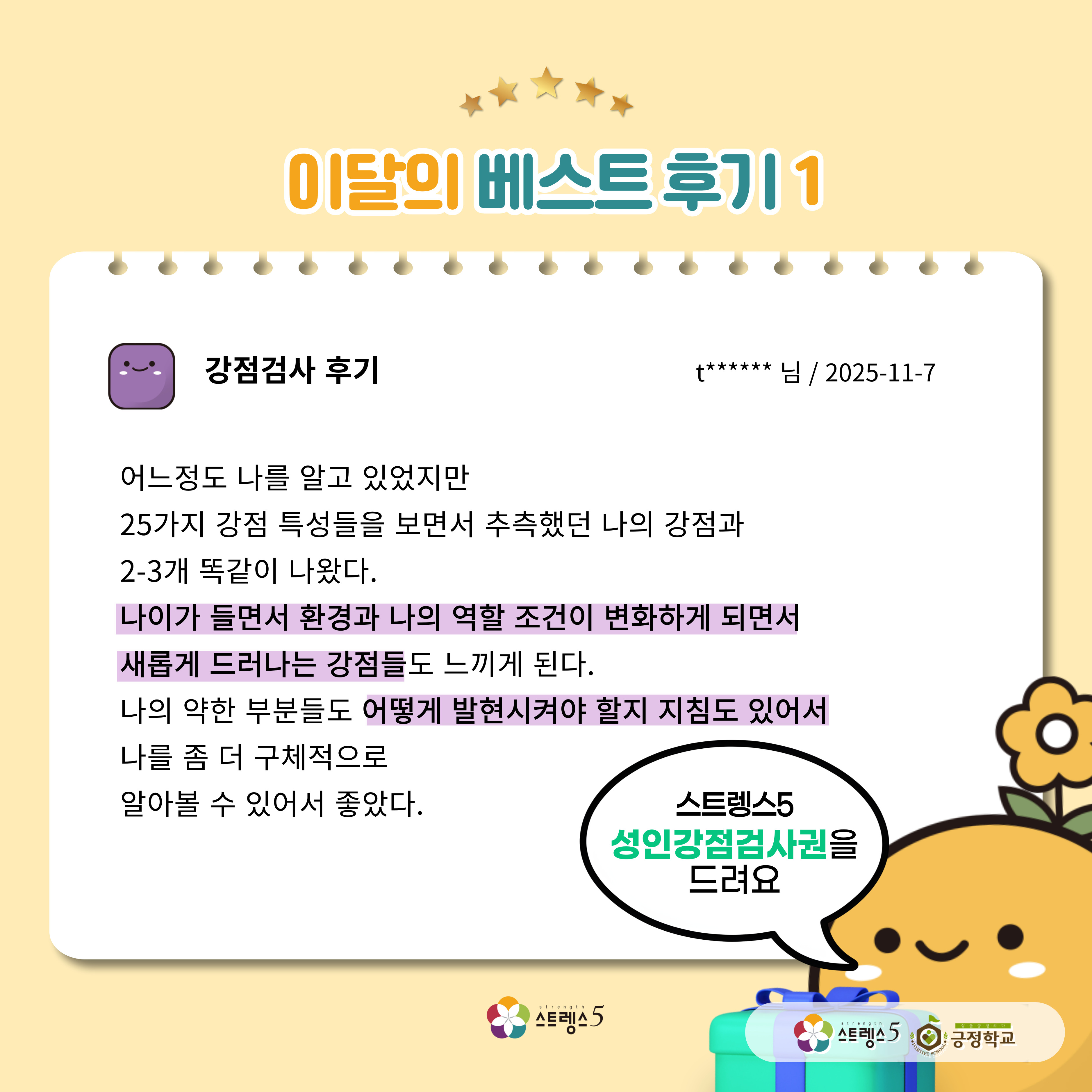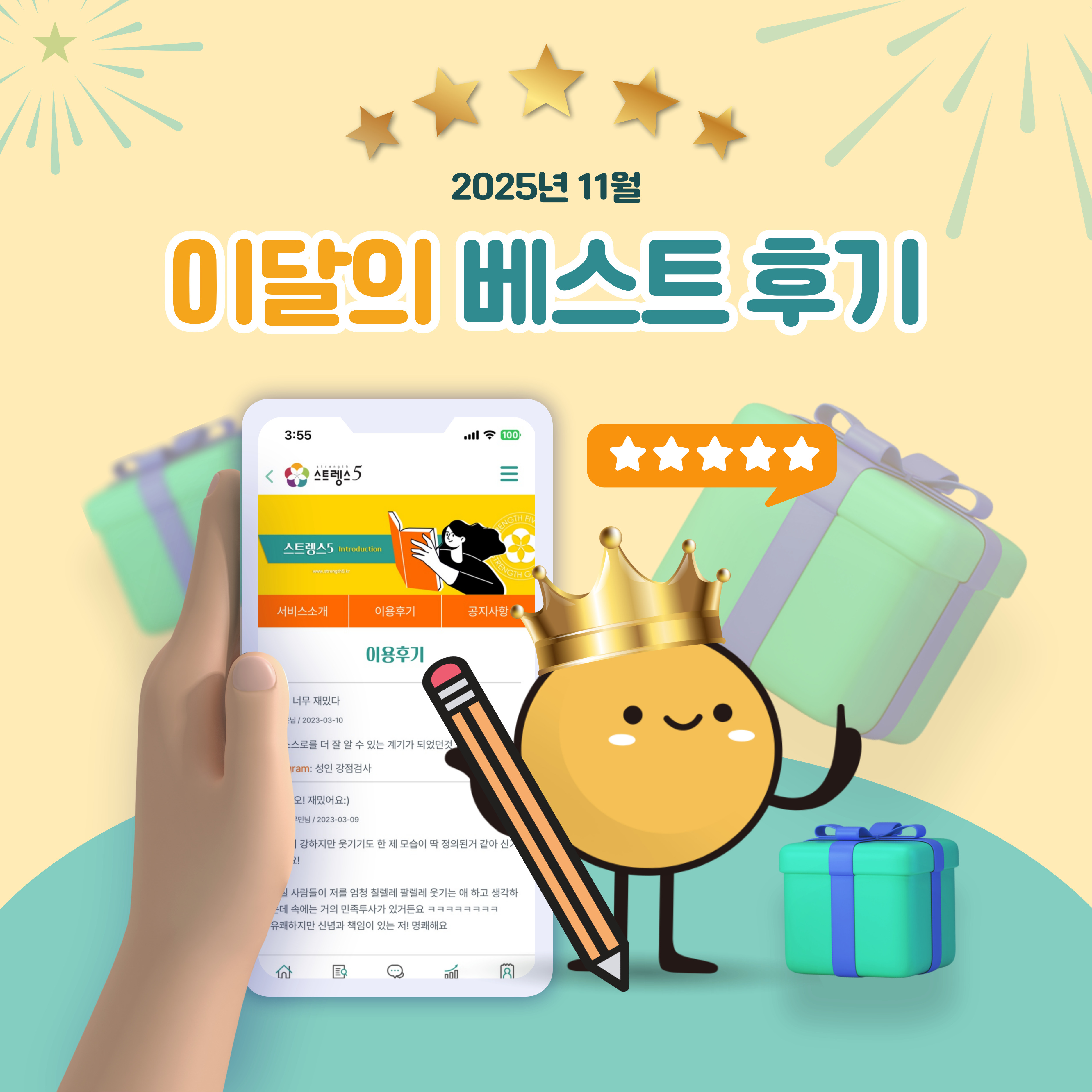 2025년 11월 베스트 리뷰 당첨자 안내 드립니다.당첨되신 회원분들께는 문자로 개별 안내드렸습니다🤲🏻잊지말고 꼭 쿠폰 사용해 주세요💗베스트 리뷰 이벤트 계속됩니다✨2025년 12월에도 많은 참여 부탁드려요:)✅당첨자 안내