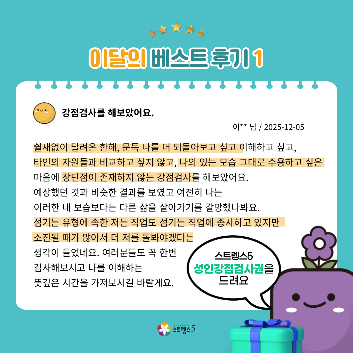 2025년 12월 베스트 리뷰 당첨자 안내 드립니다.