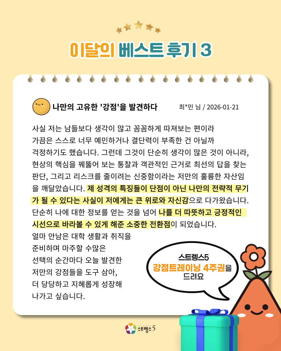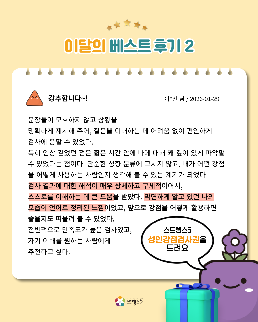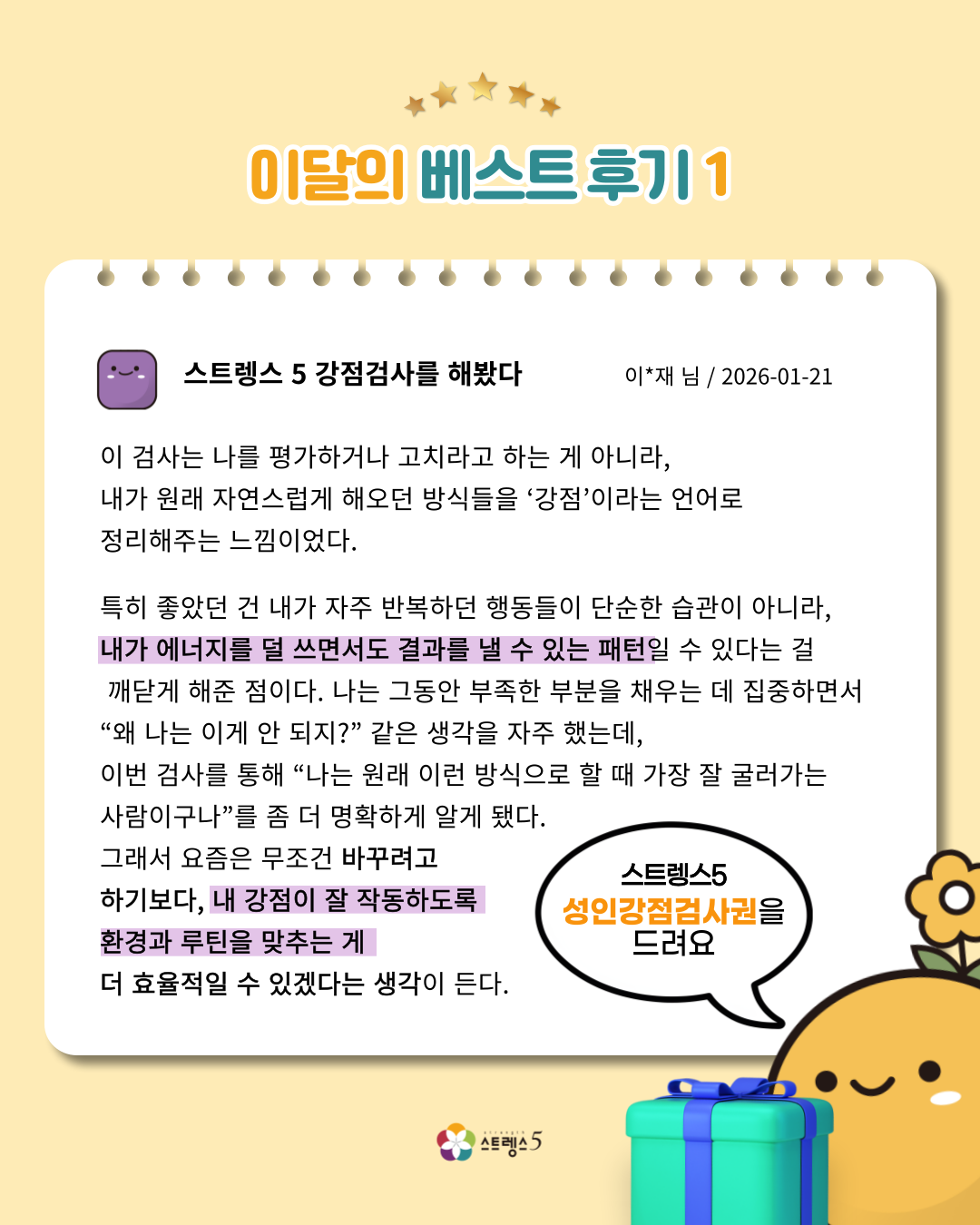 스트렝스5 1월 베스트 리뷰 당첨자 안내 드립니다.